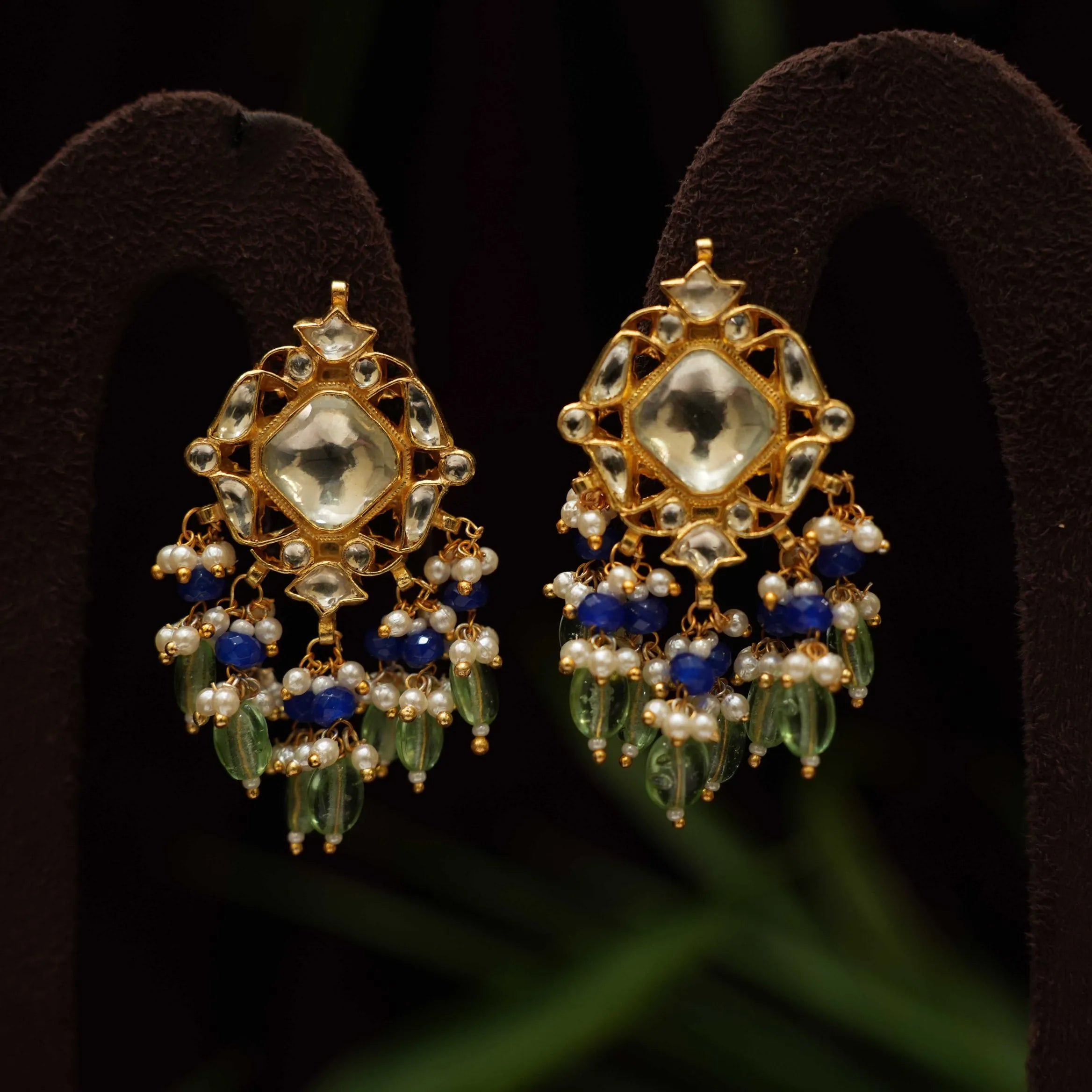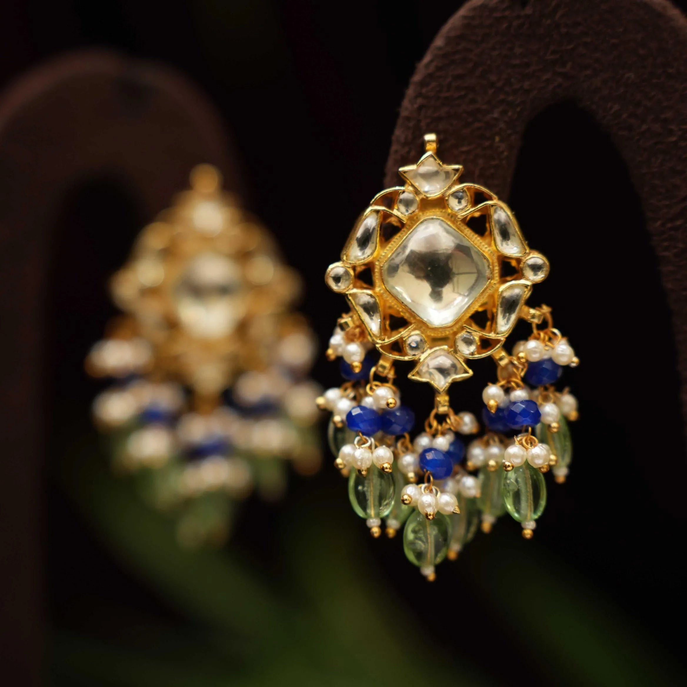 A beautiful & statement earrings studded with polki stones, pearls, beads.