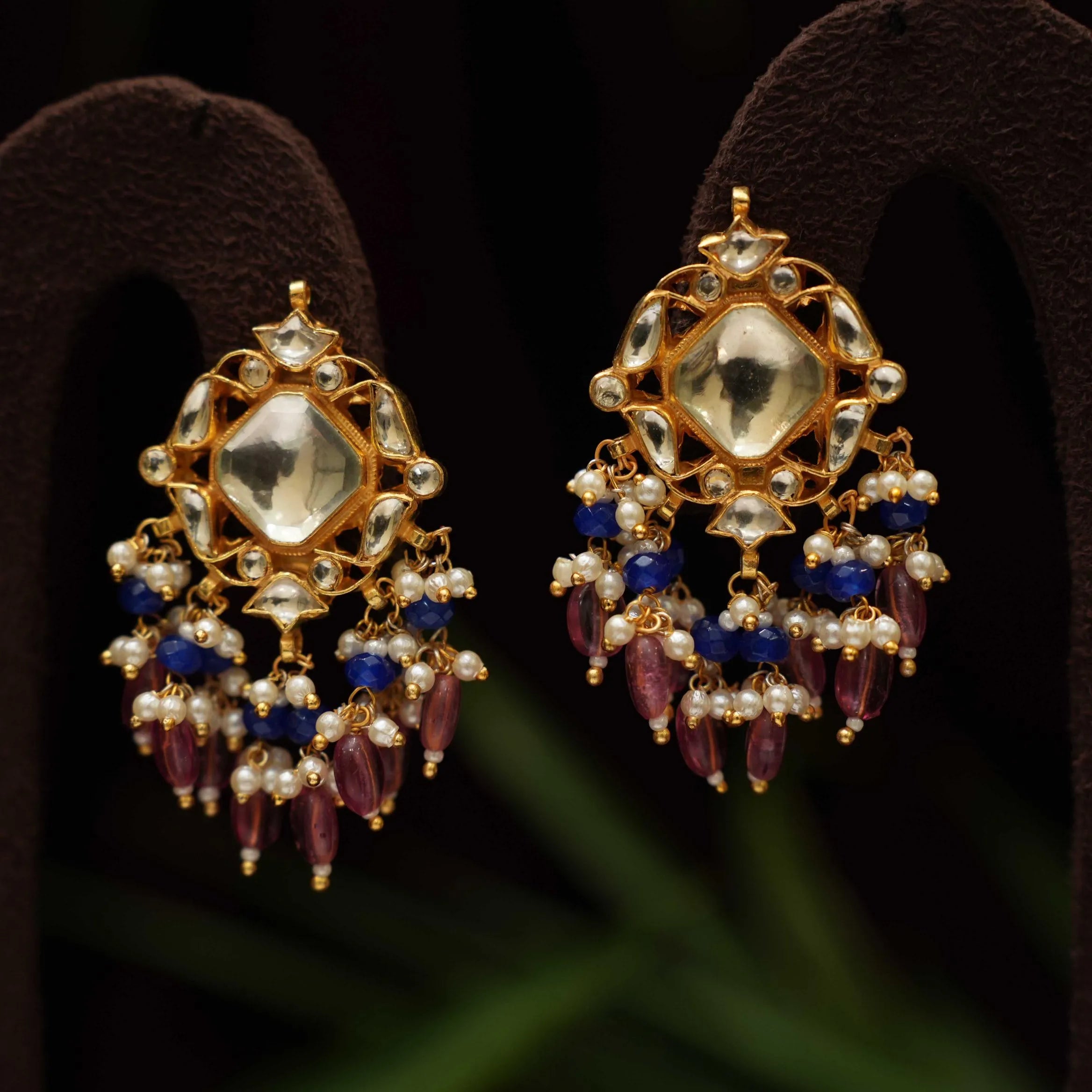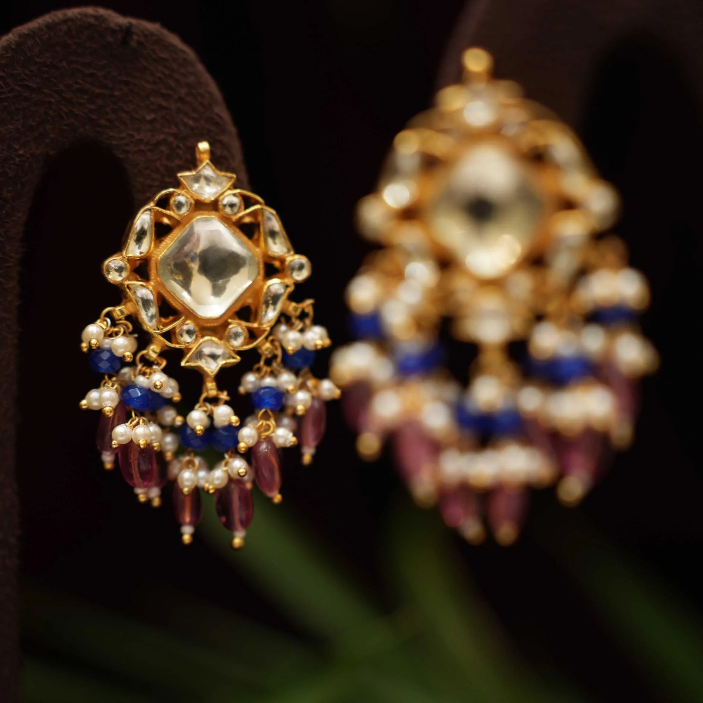 A beautiful & statement earrings studded with polki stones, pearls, beads.