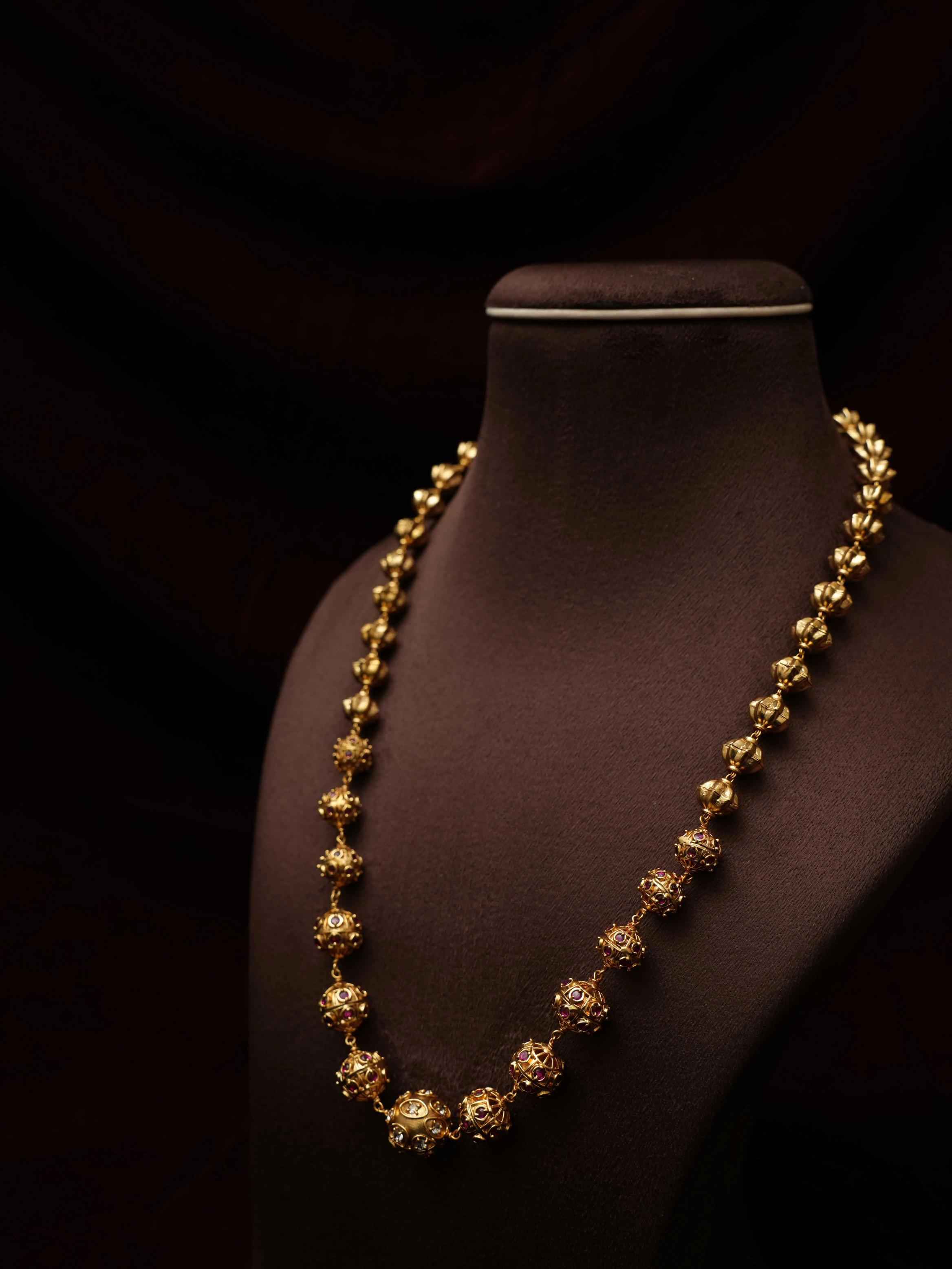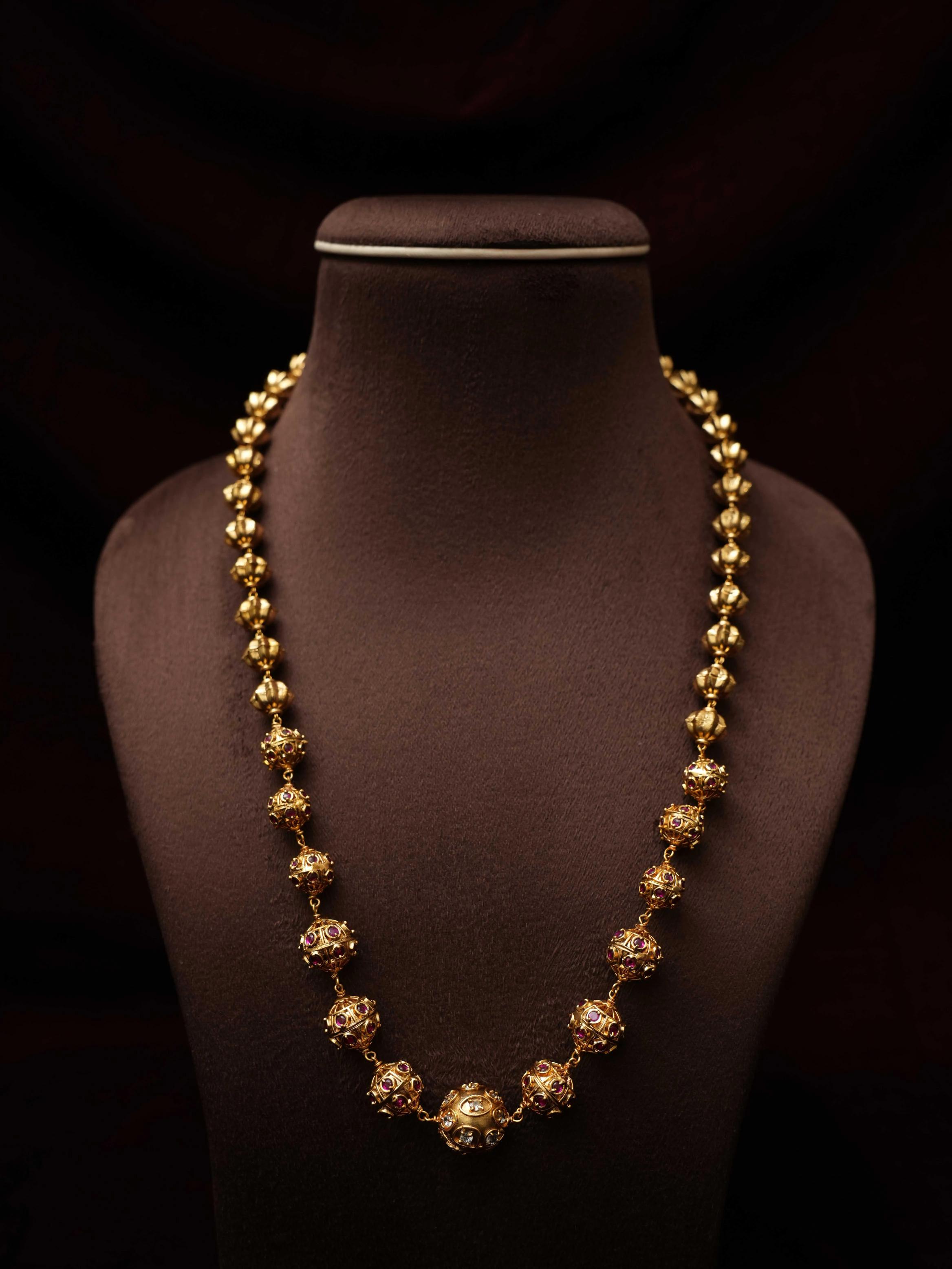 A stunning necklace handcrafted with golden balls finely finished with Nagas finish.