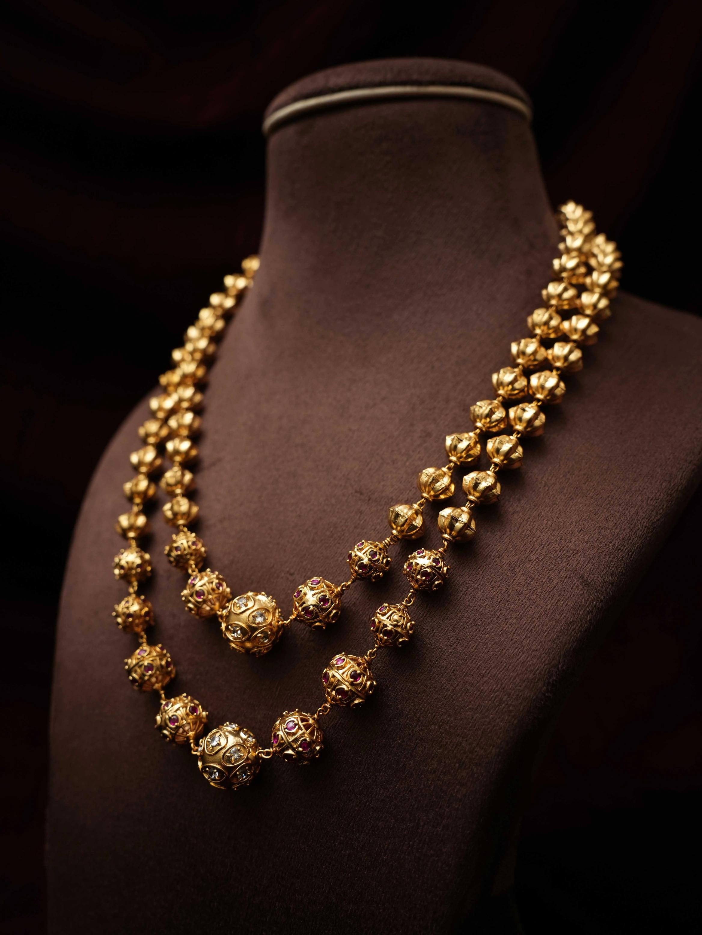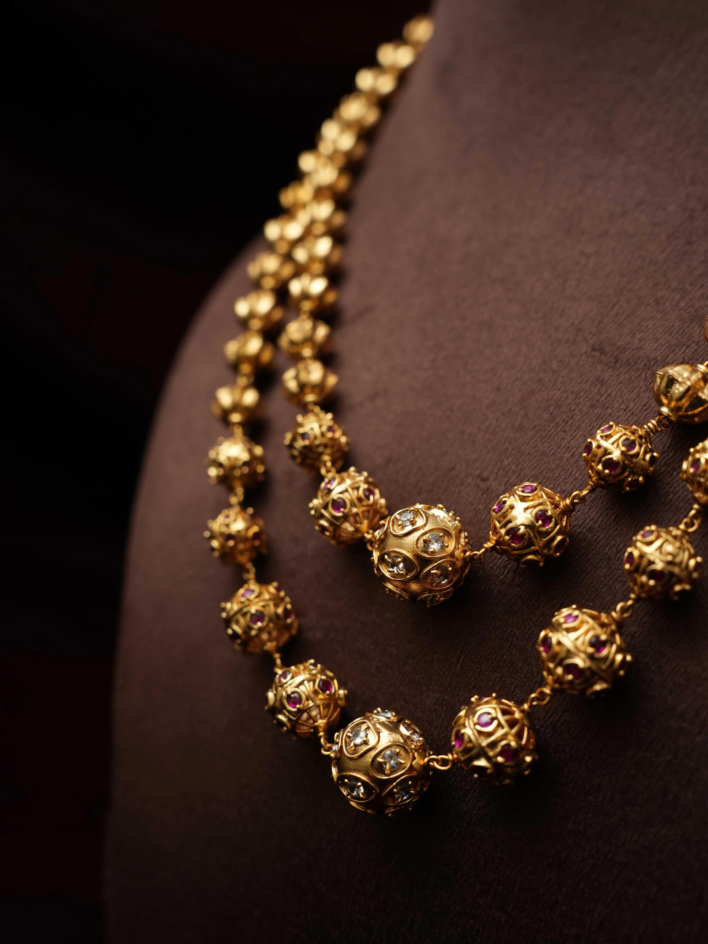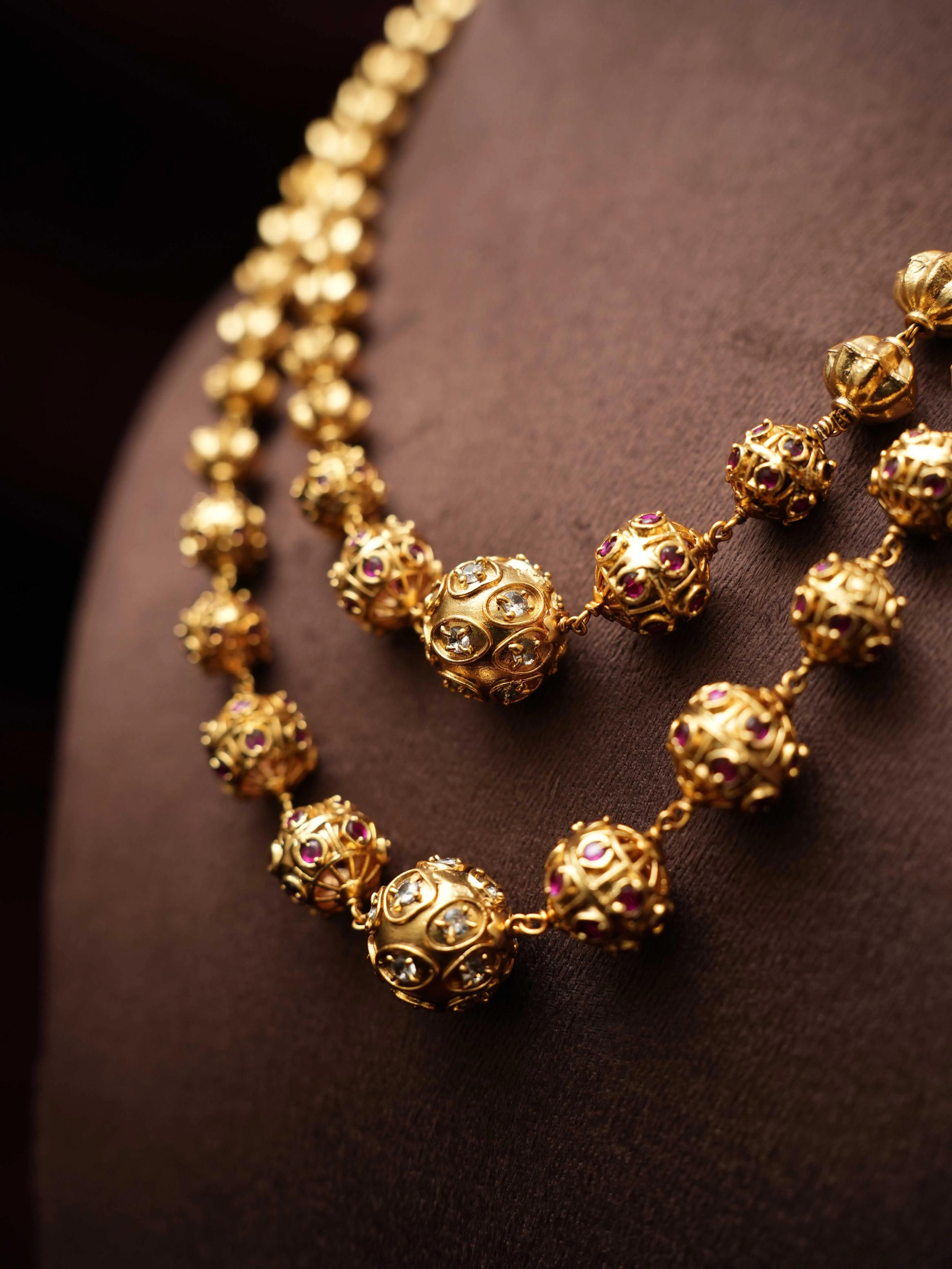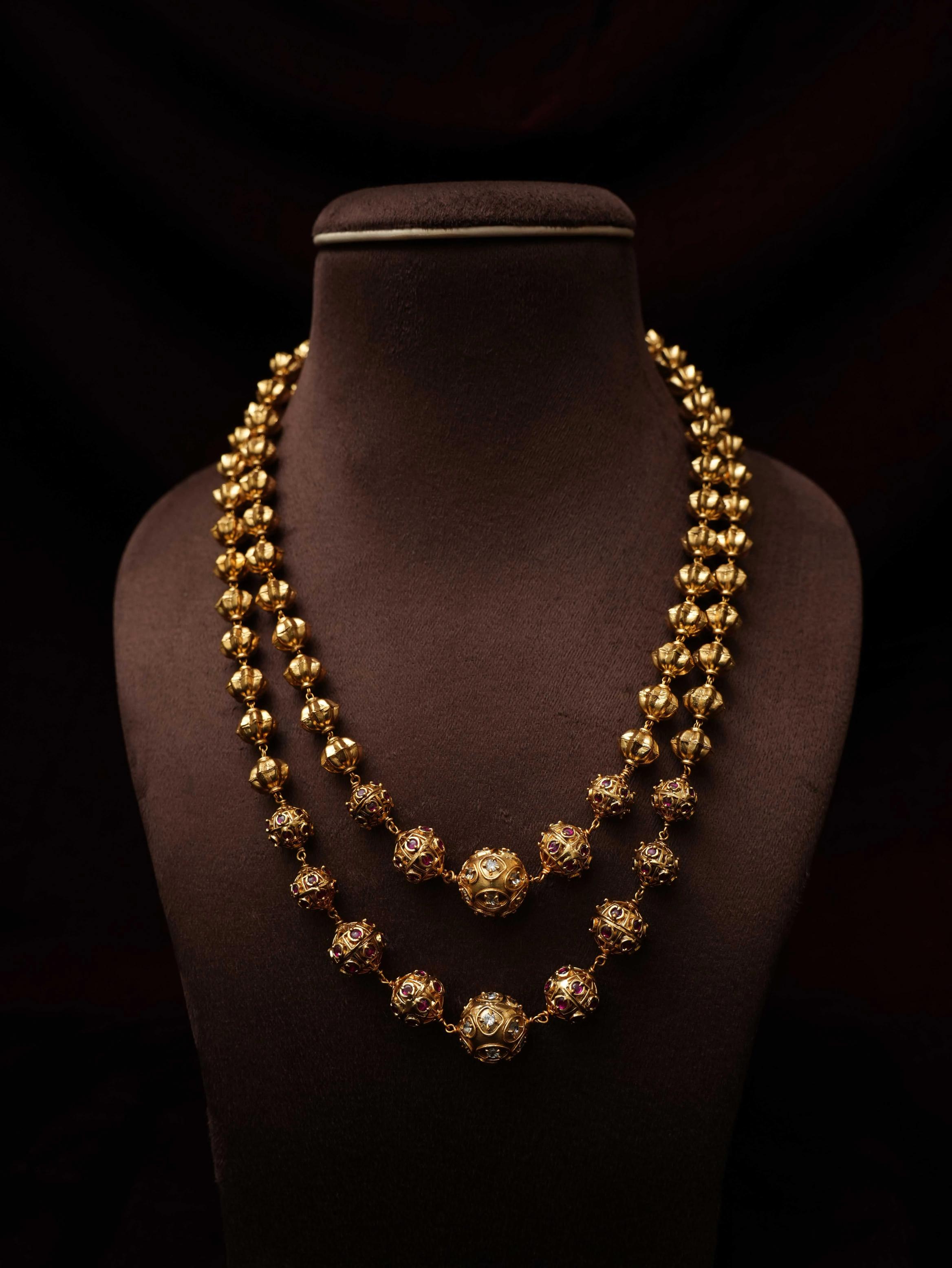 A stunning two layered necklace handcrafted with golden balls finely finished with Nagas finish.