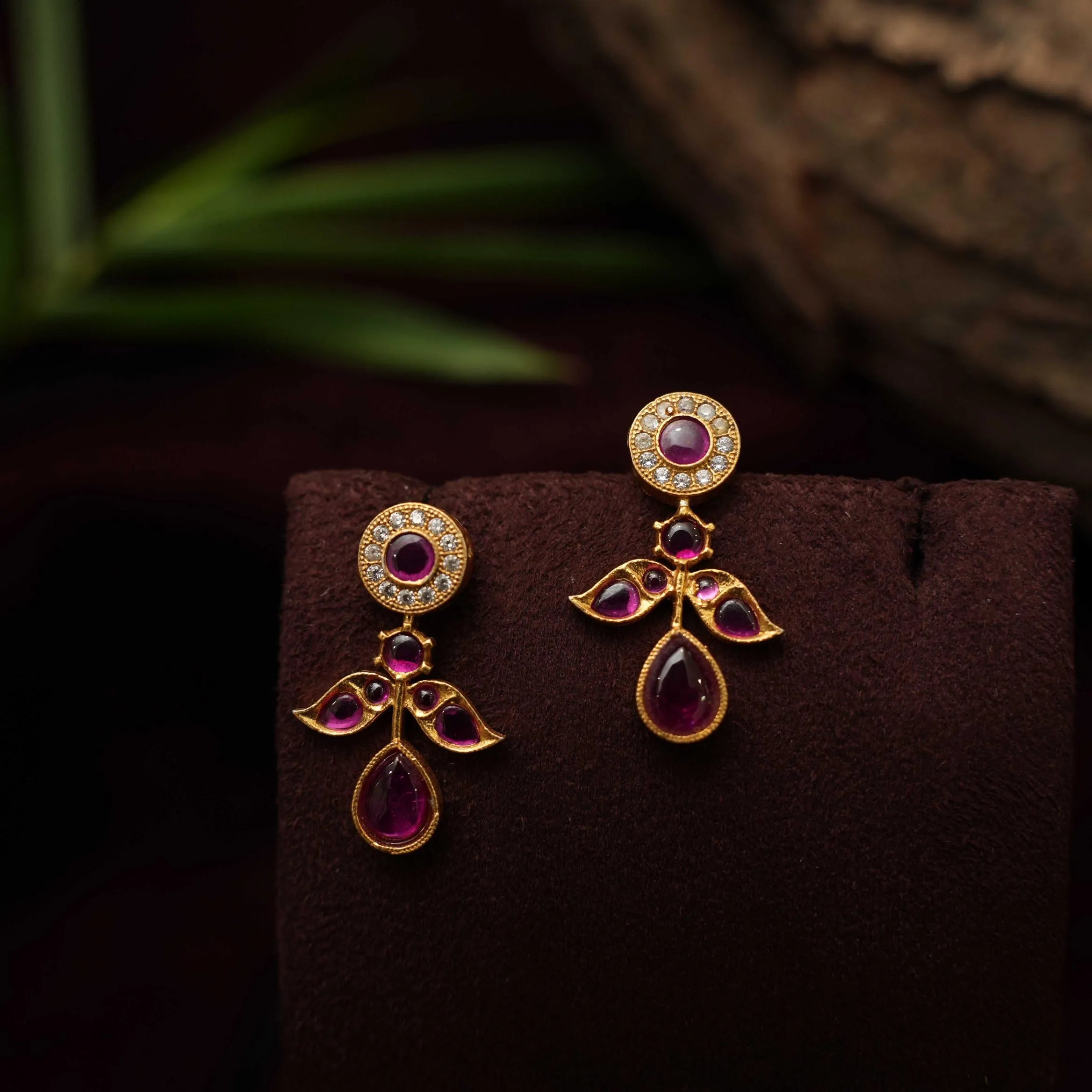 An elegant silver earrings handcrafted with red & white stones.