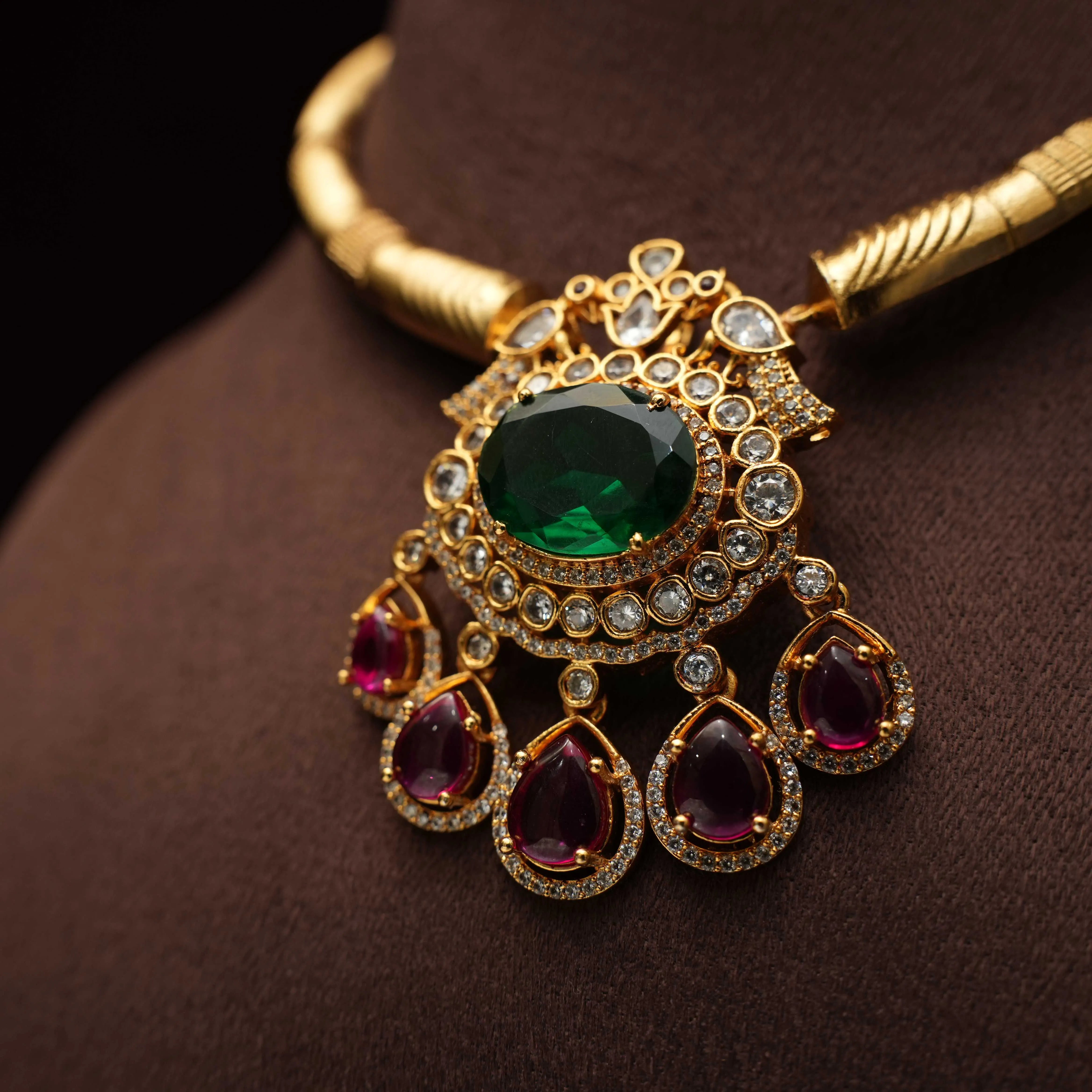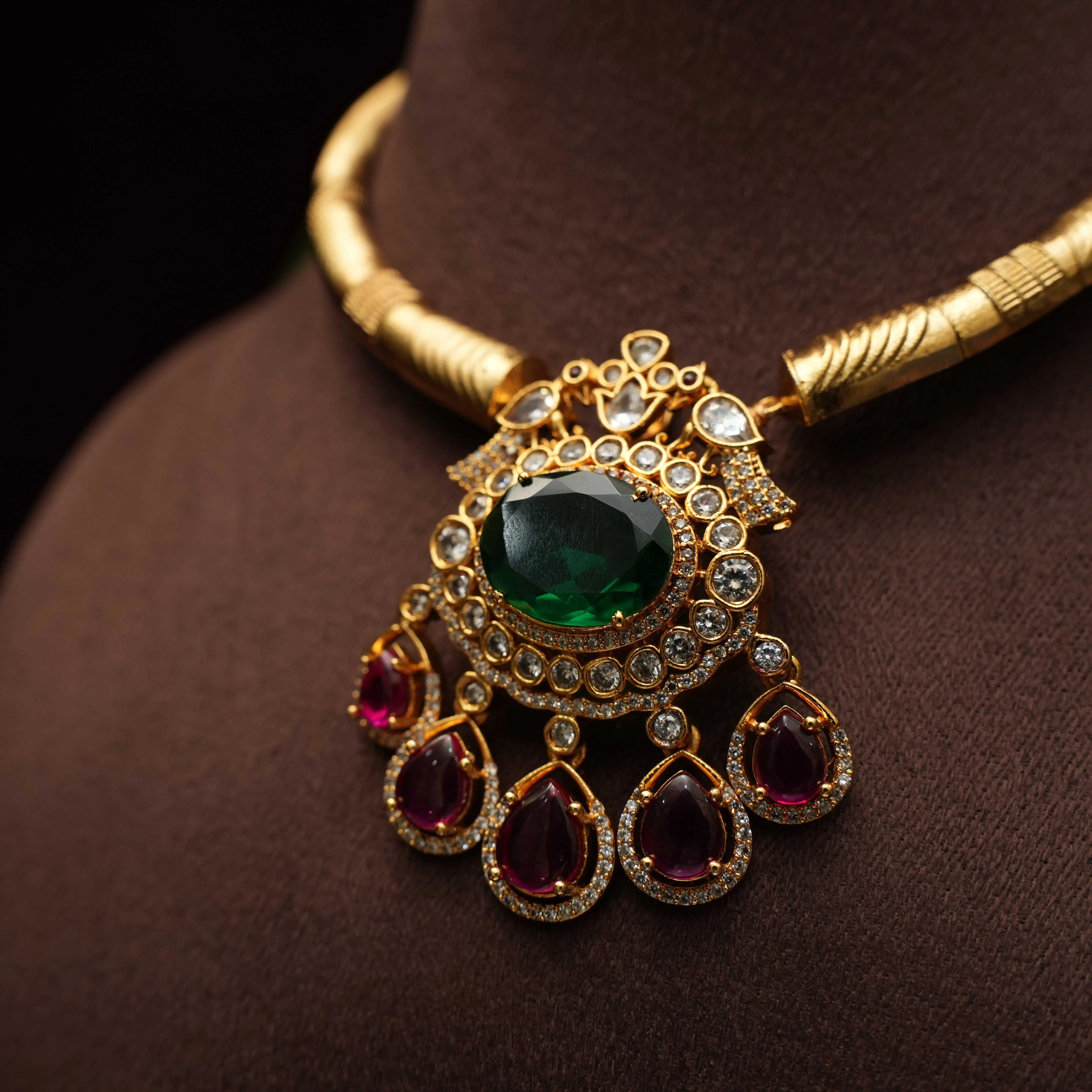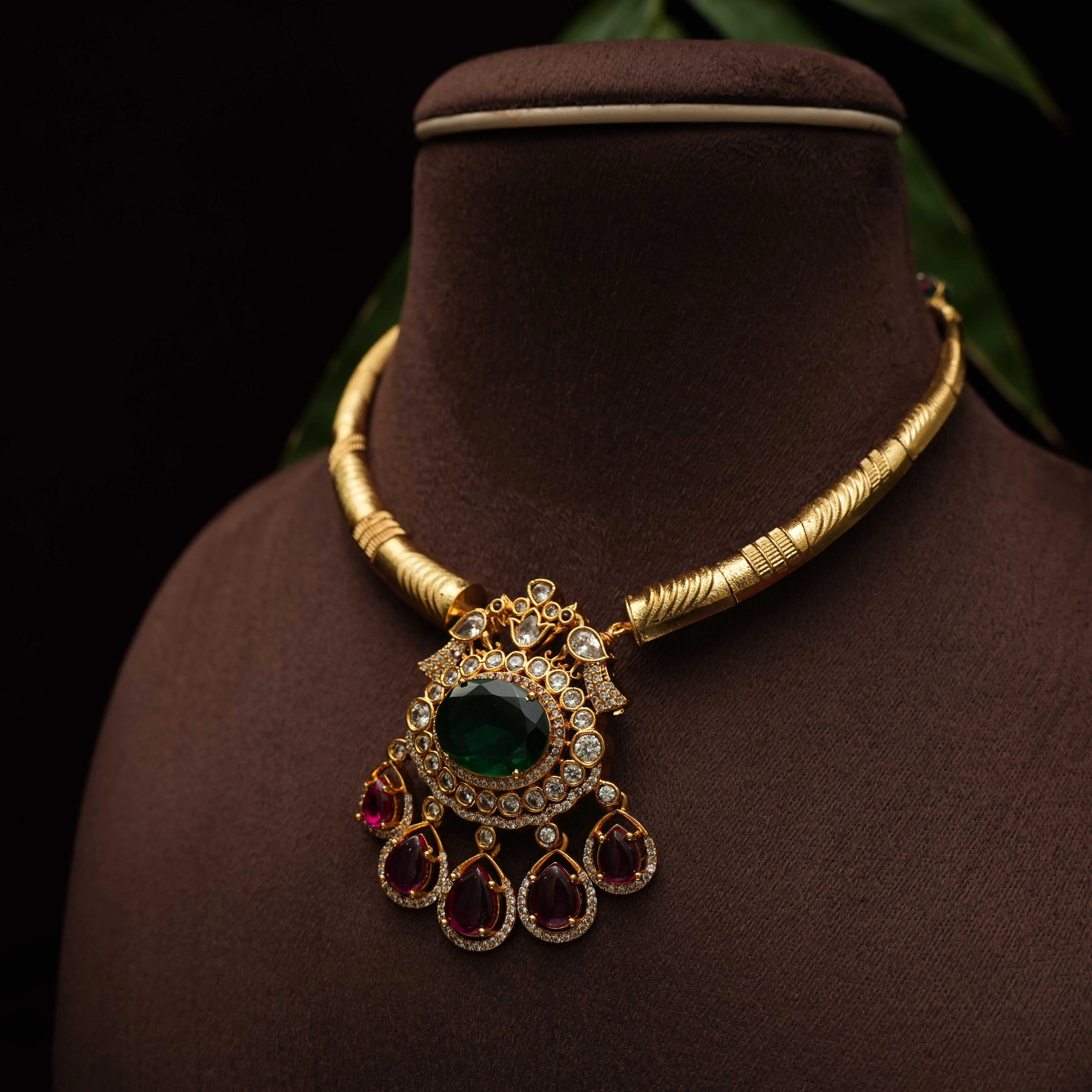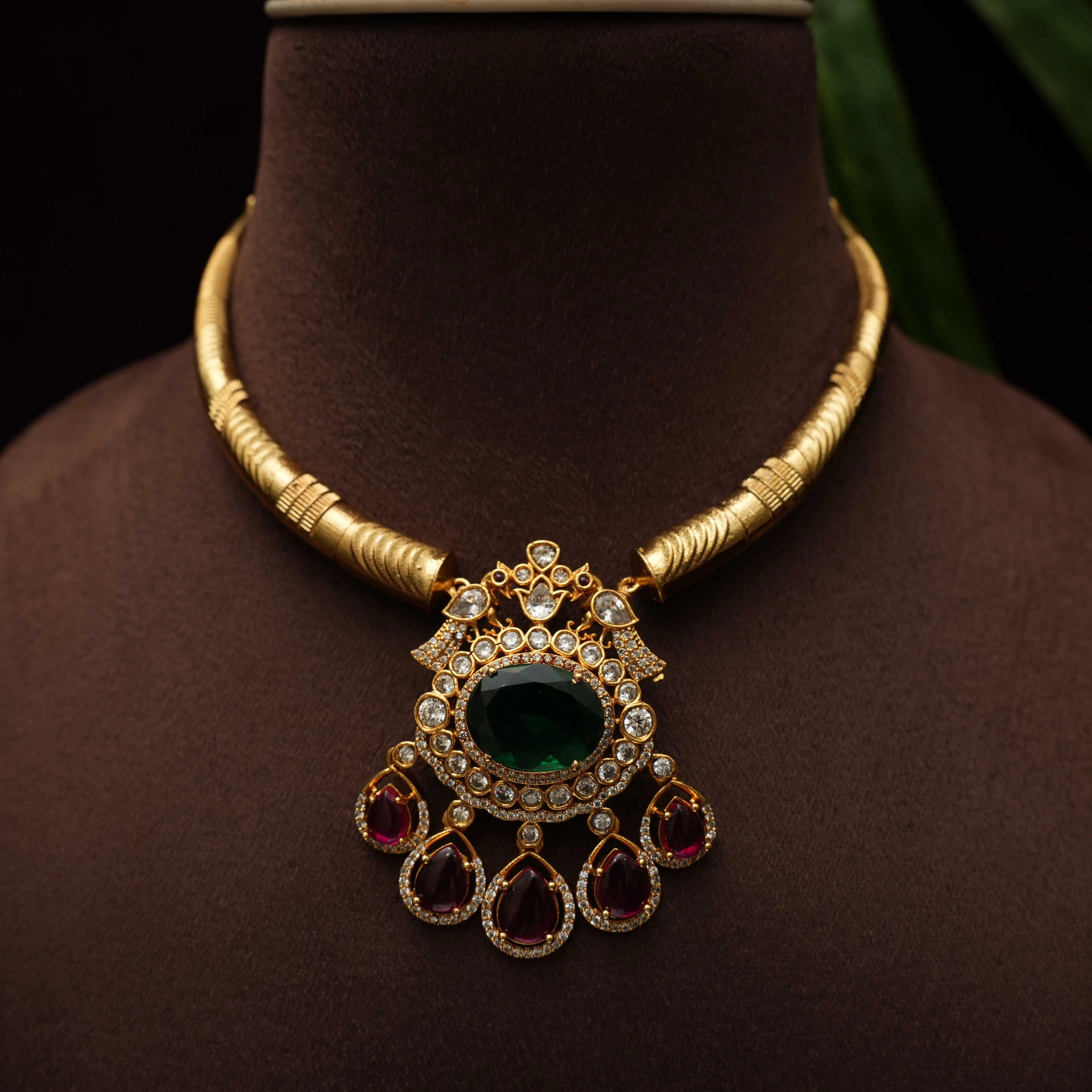 Sheetal Antique Hasli Necklace - Green
