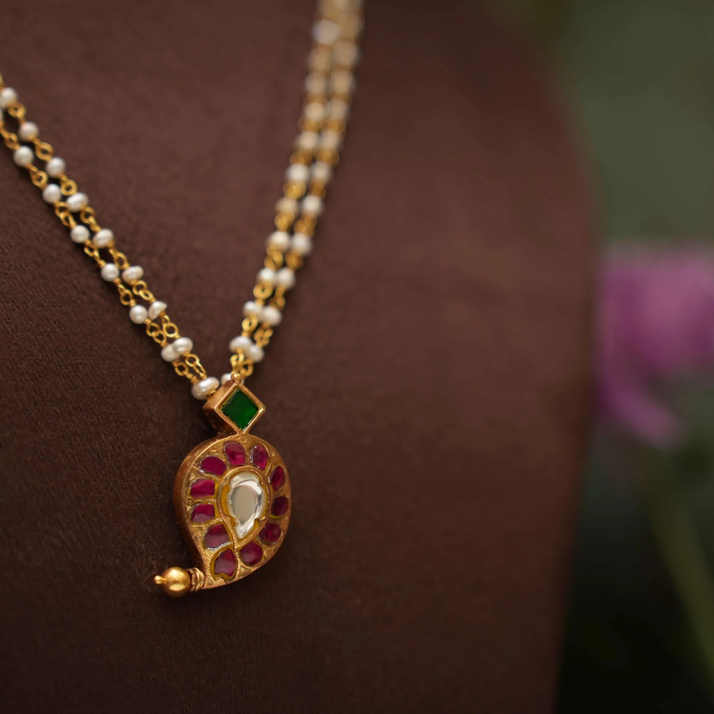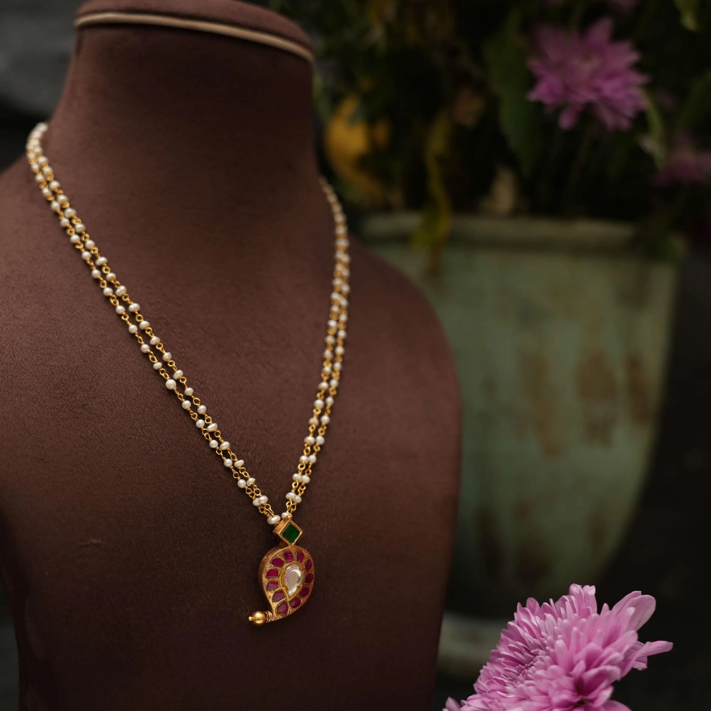 Grace meets sophistication in our elegant Pearl Chain paired with a 92.5 Silver Mango Pendant. The timeless allure of pearls harmonizes with the intricate craftsmanship of the silver mango pendant, creating a refined accessory. This pairing effortlessly embodies classic charm, making it a versatile and stylish addition to your jewelry collection.