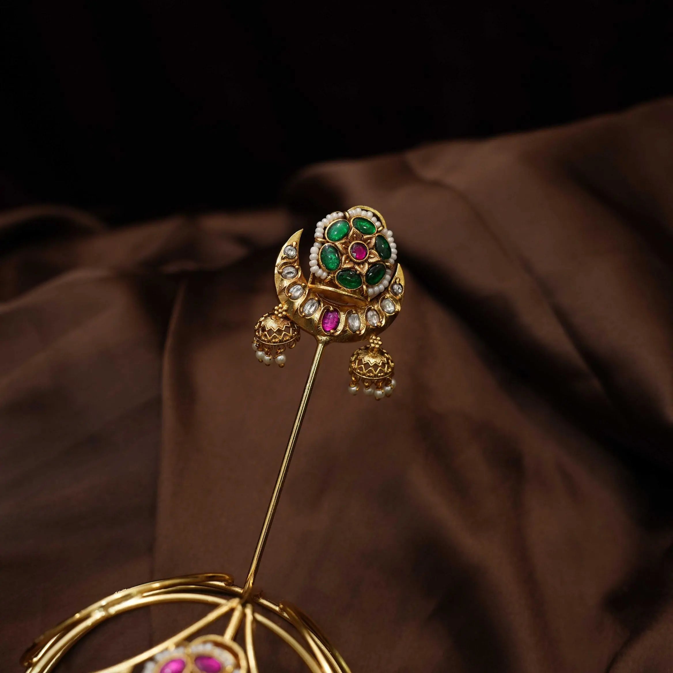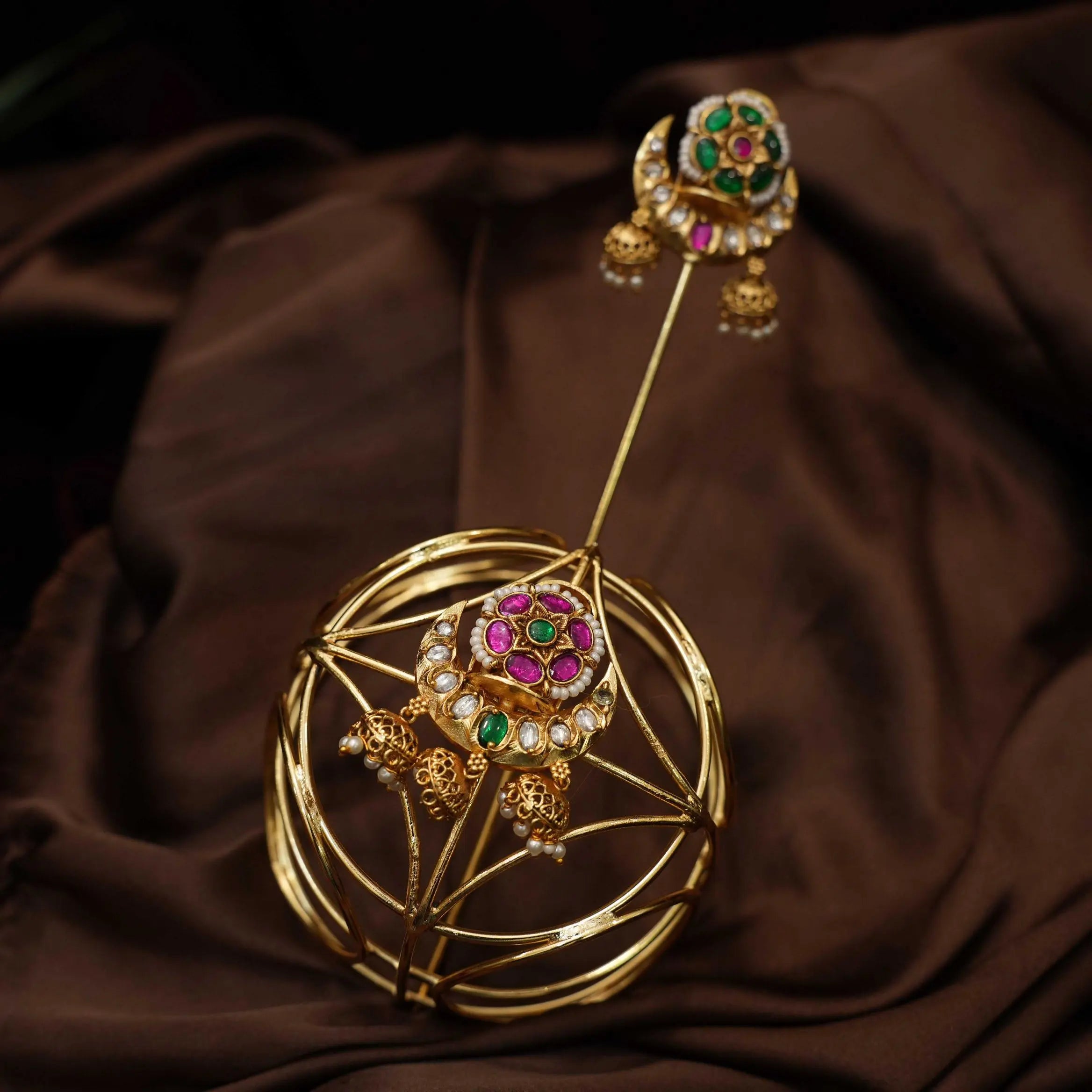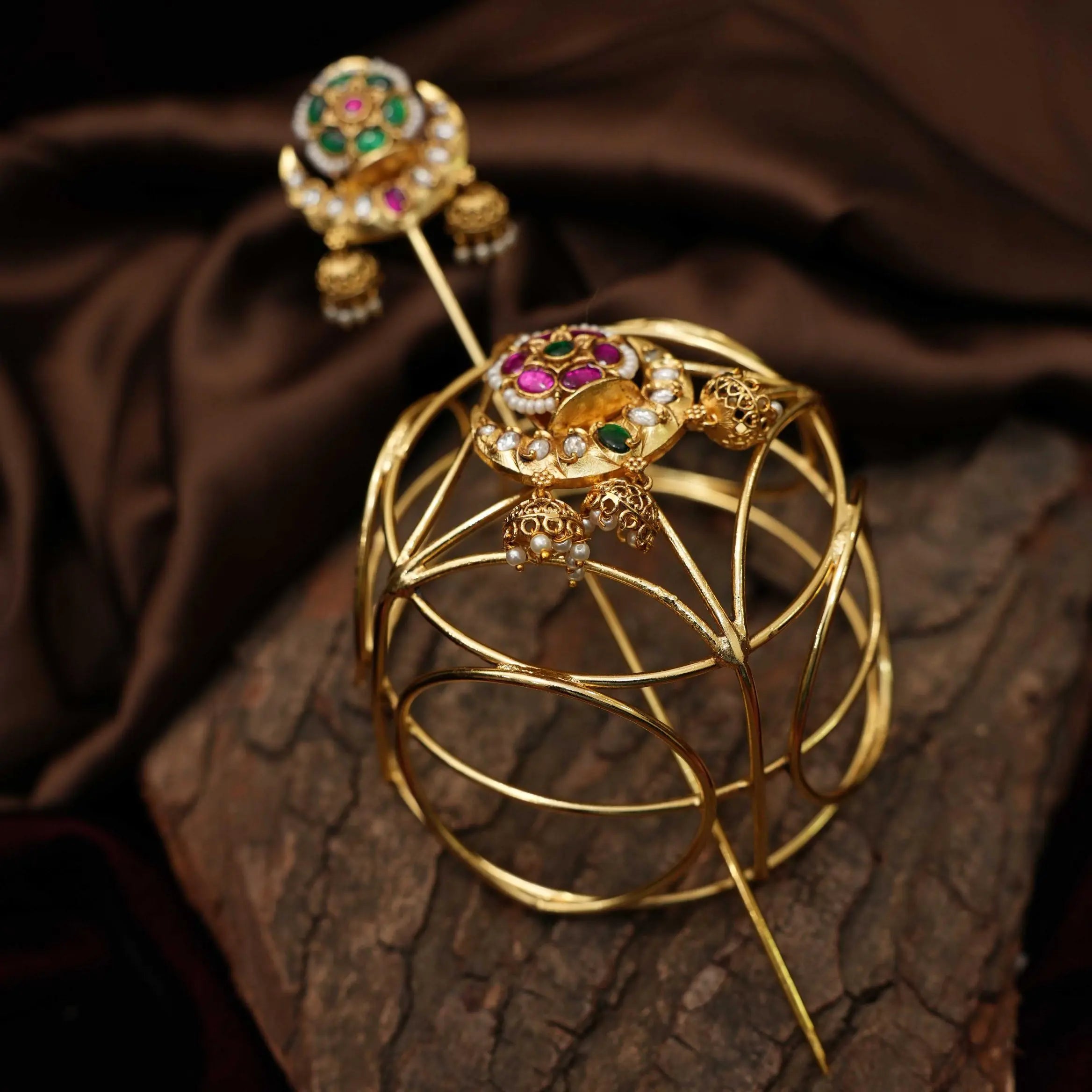 Enhance your hairstyle with the Srilekha Designer Hair Bun Cage Accessory. Crafted with exceptional attention to detail, this elegant accessory brings a touch of luxury and sophistication to your look, effortlessly elevating your style.