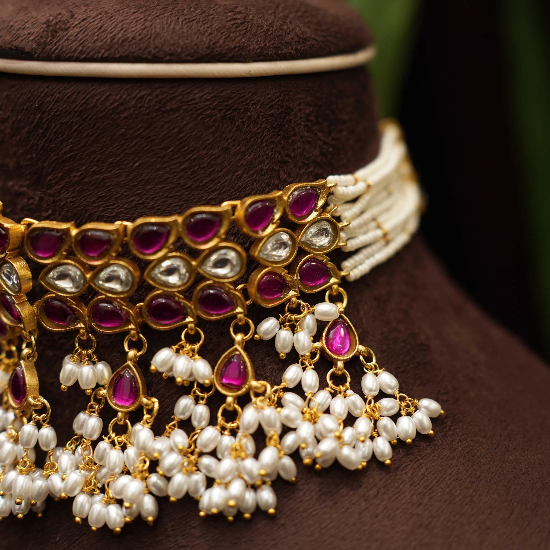 Tanisha Polki Necklace - Red - Rimli Boutique