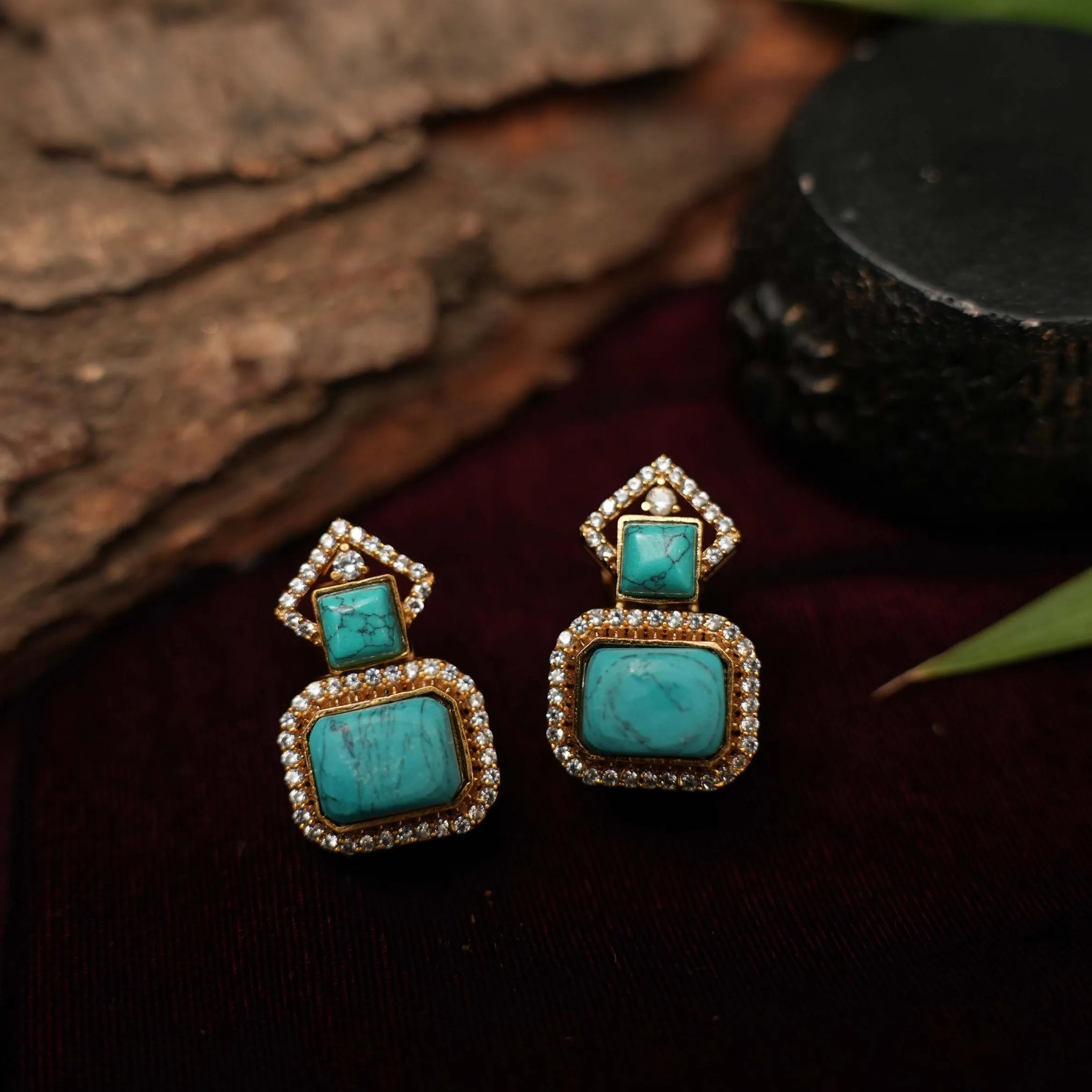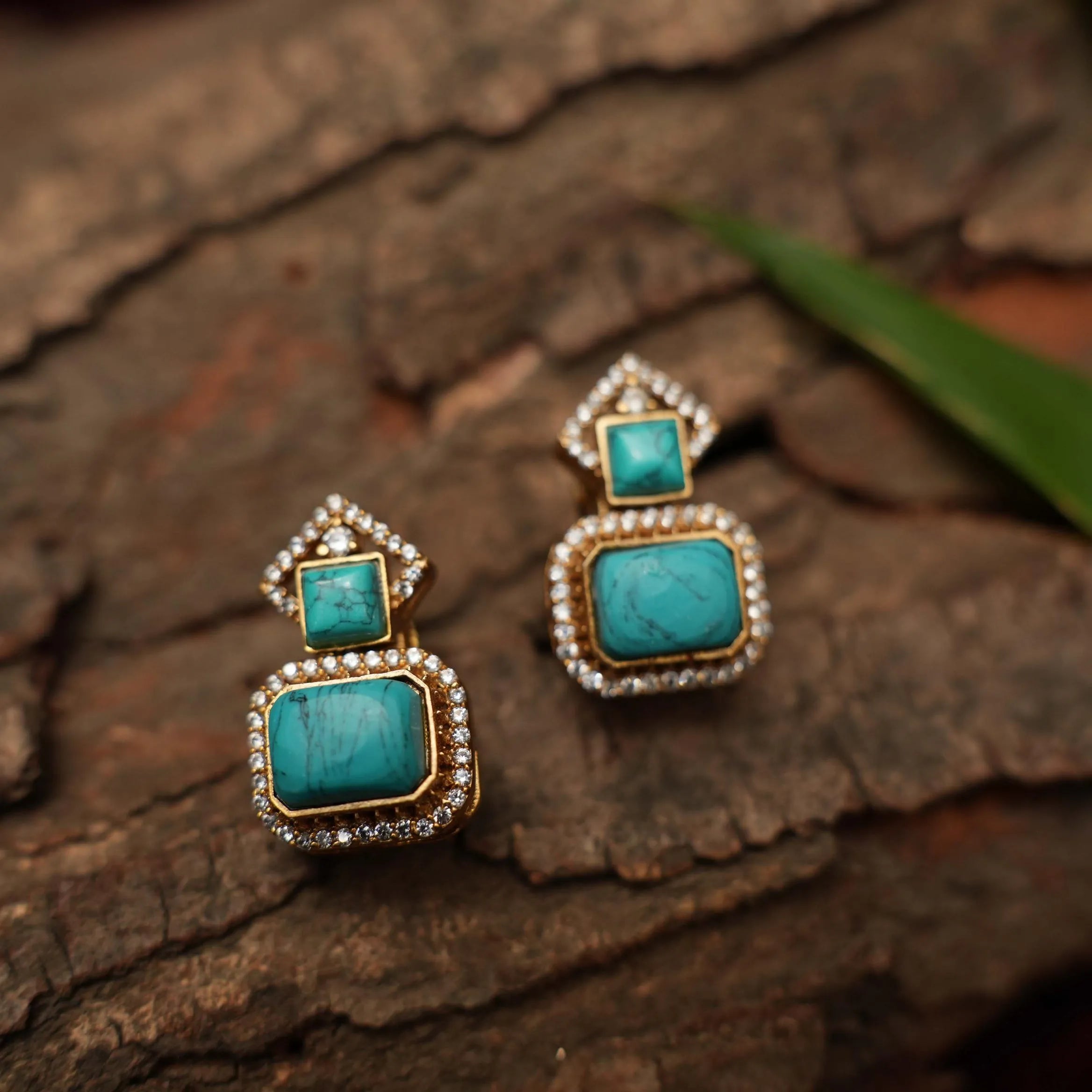 A simple & classic earrings studded with zircon stones & turquoise agate.
