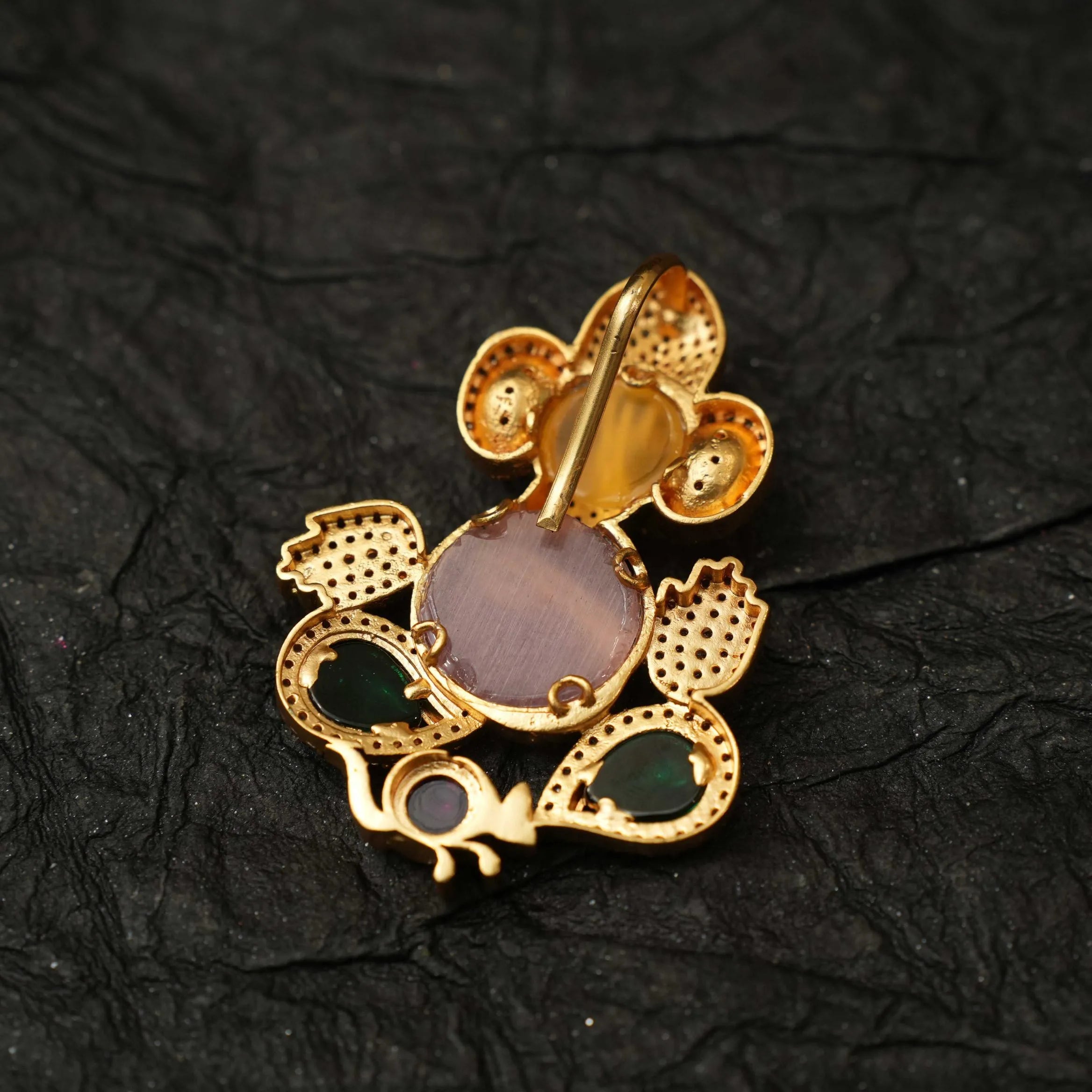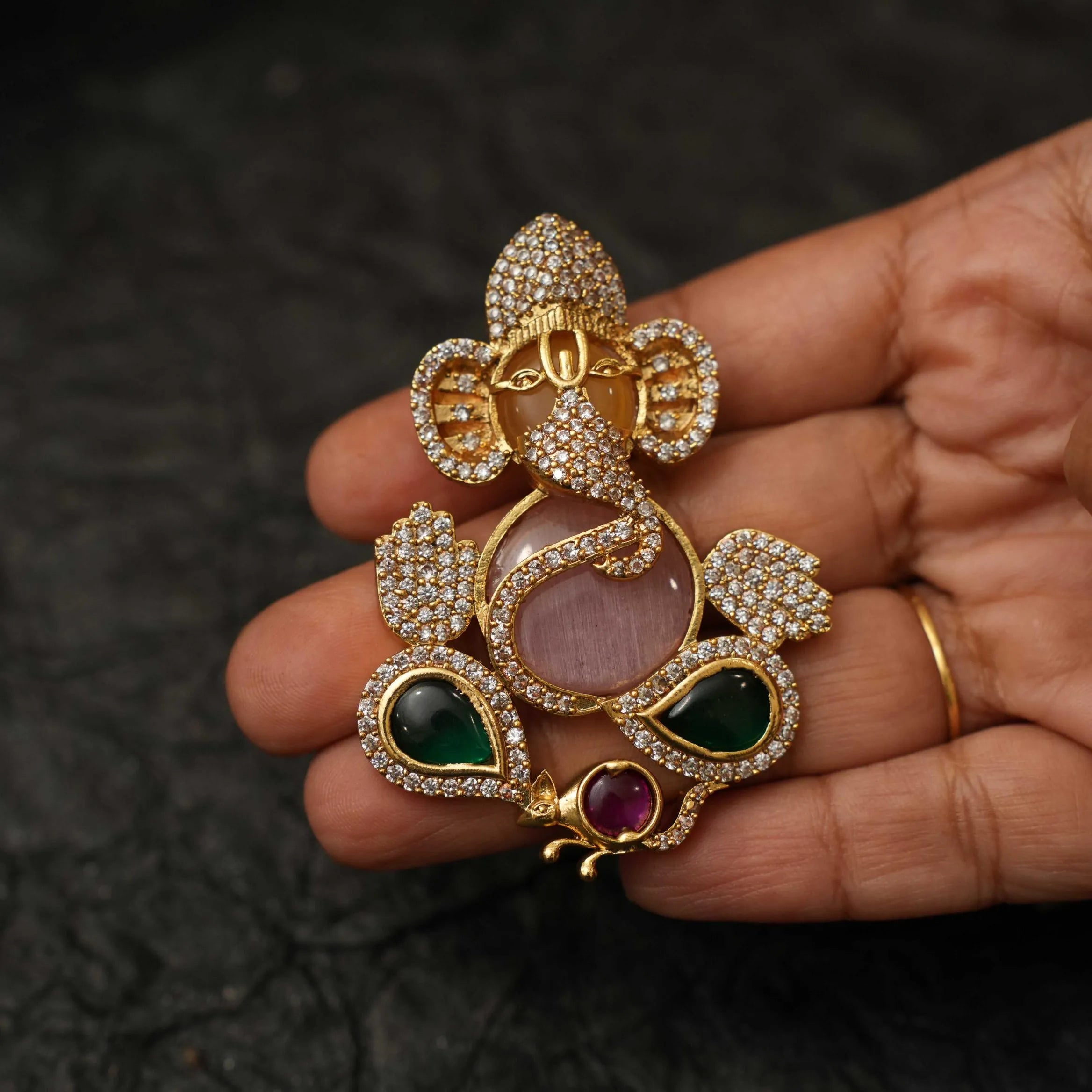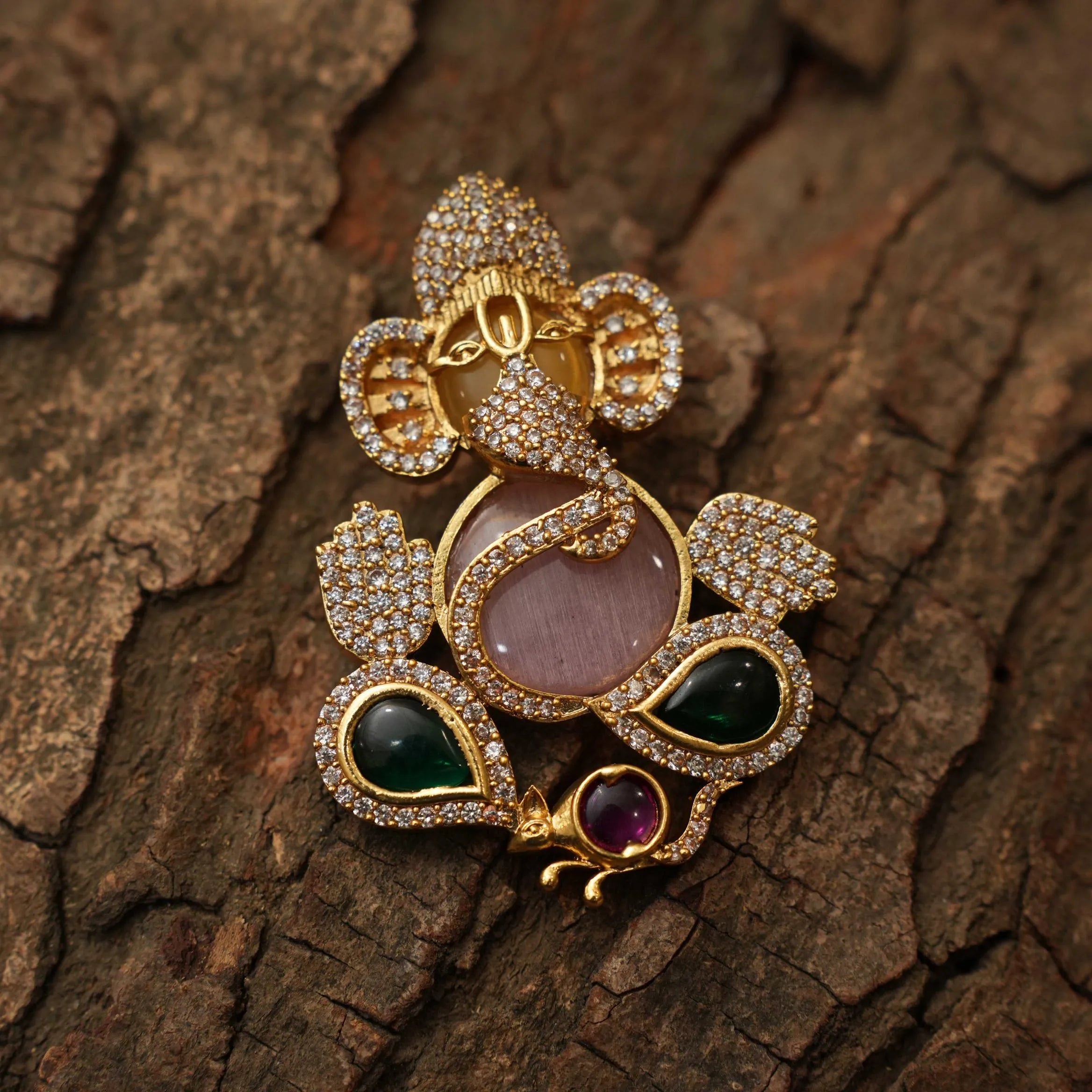 A traditional antique pendant in God Ganesha motif studded with zircon stones.