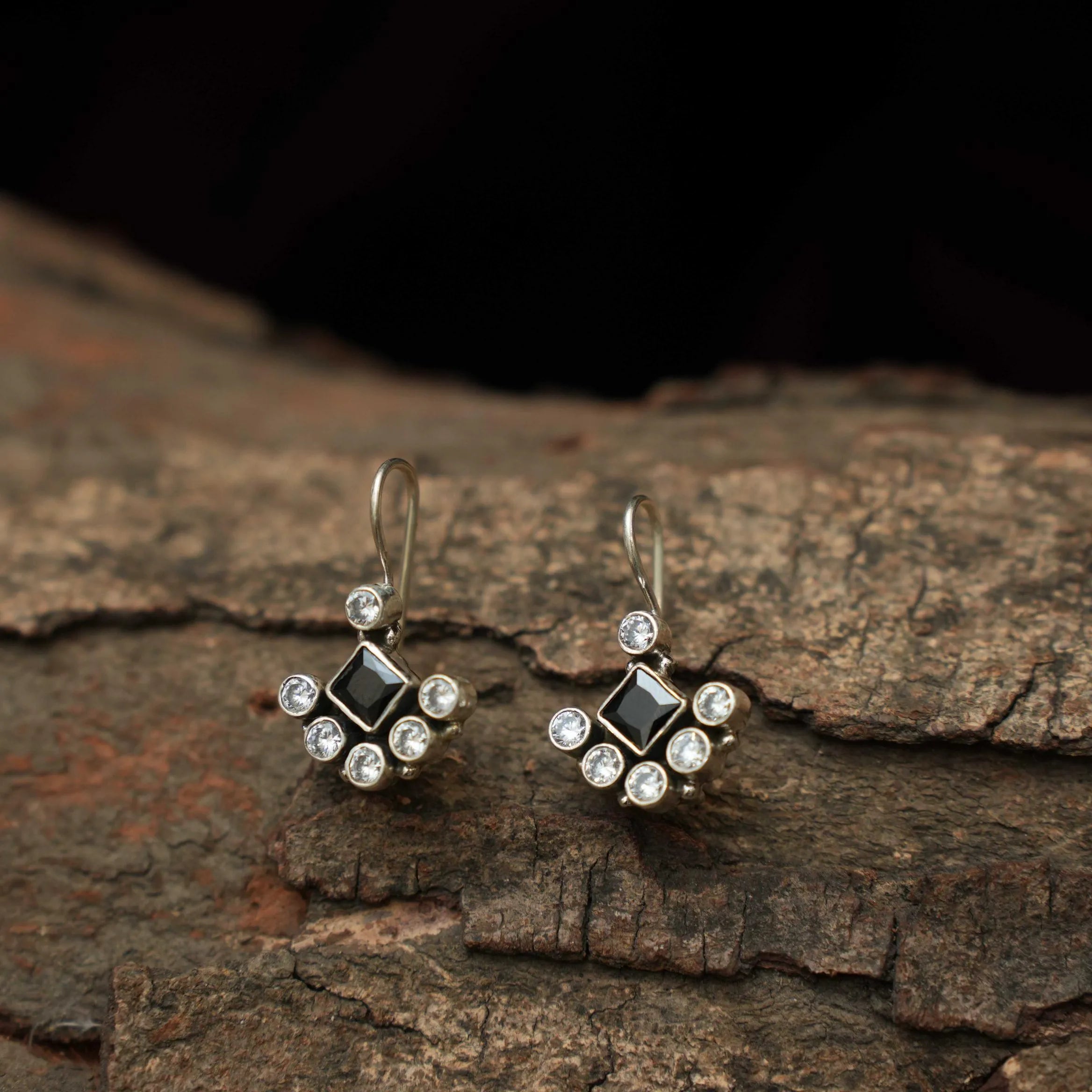 Uditi Silver Oxidised Earring Set - Black