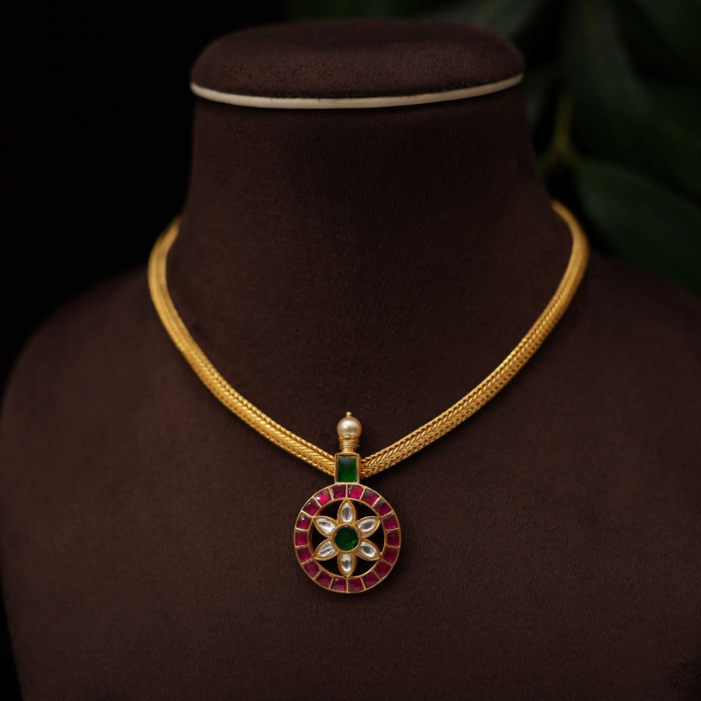 Step into tradition with our 92.5 Silver Attigai, handcrafted with red, green, and white stones. Meticulously designed, this attigai seamlessly merges cultural heritage with timeless elegance. Elevate your style with the vibrant hues and intricate craftsmanship, making a statement with this beautifully crafted and traditionally inspired necklace.