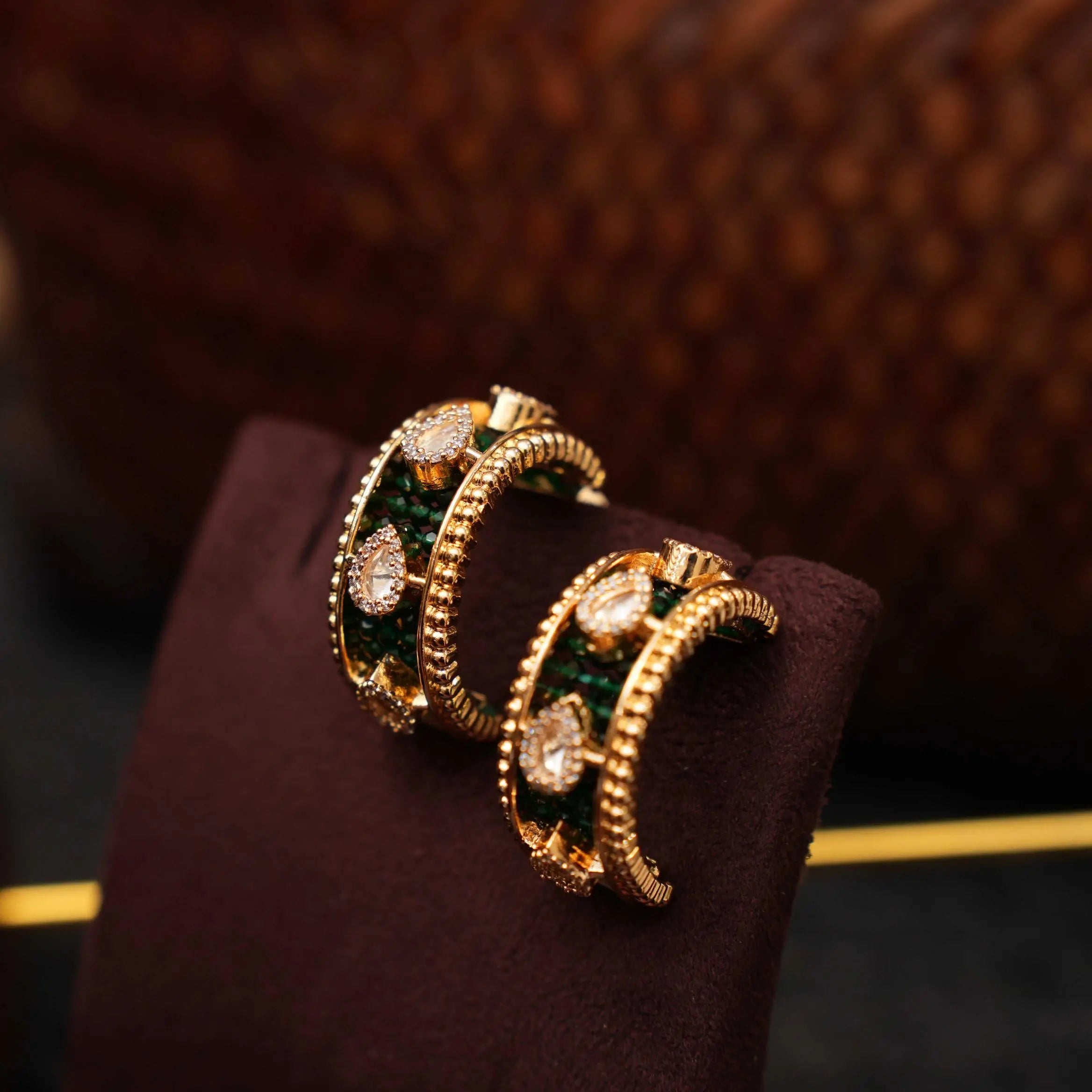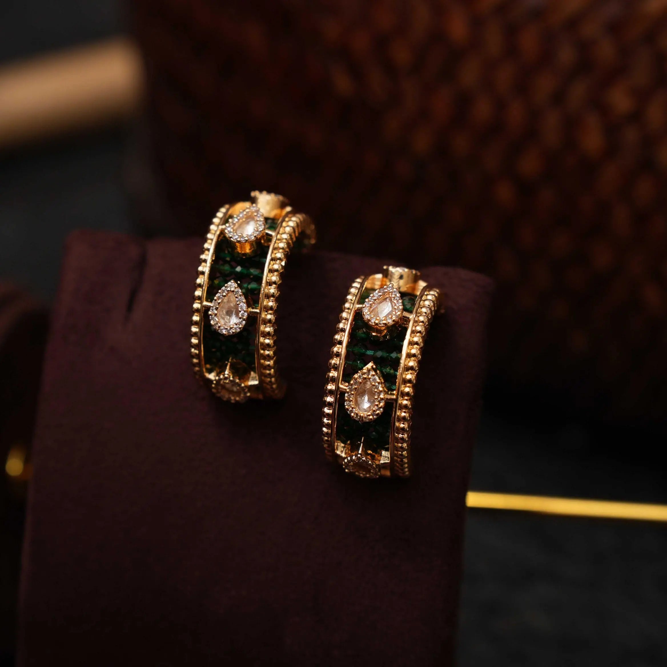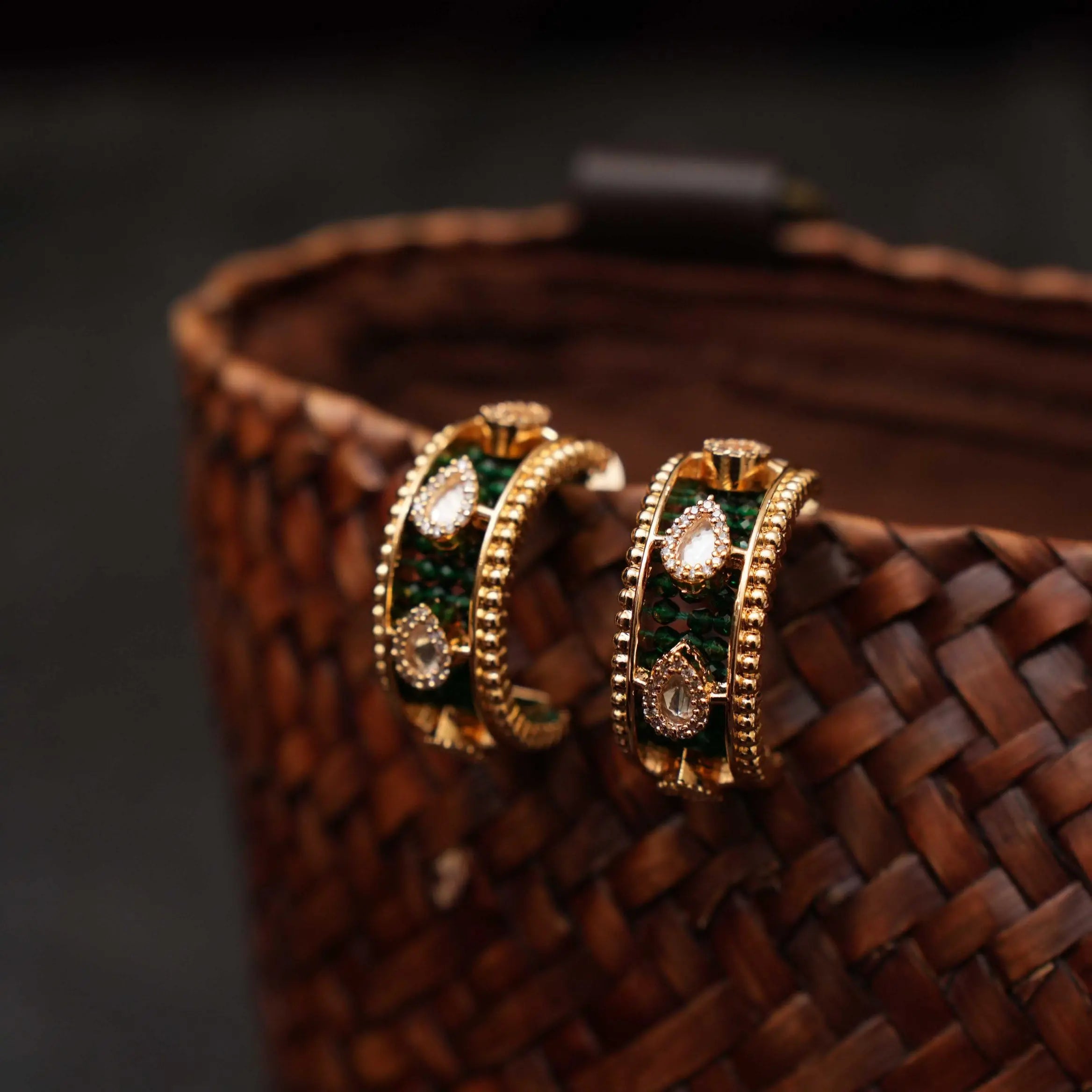 Vinoshini Polki Half Hoop Earrings - Green