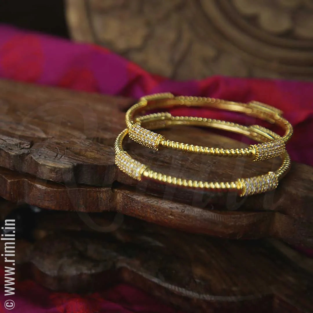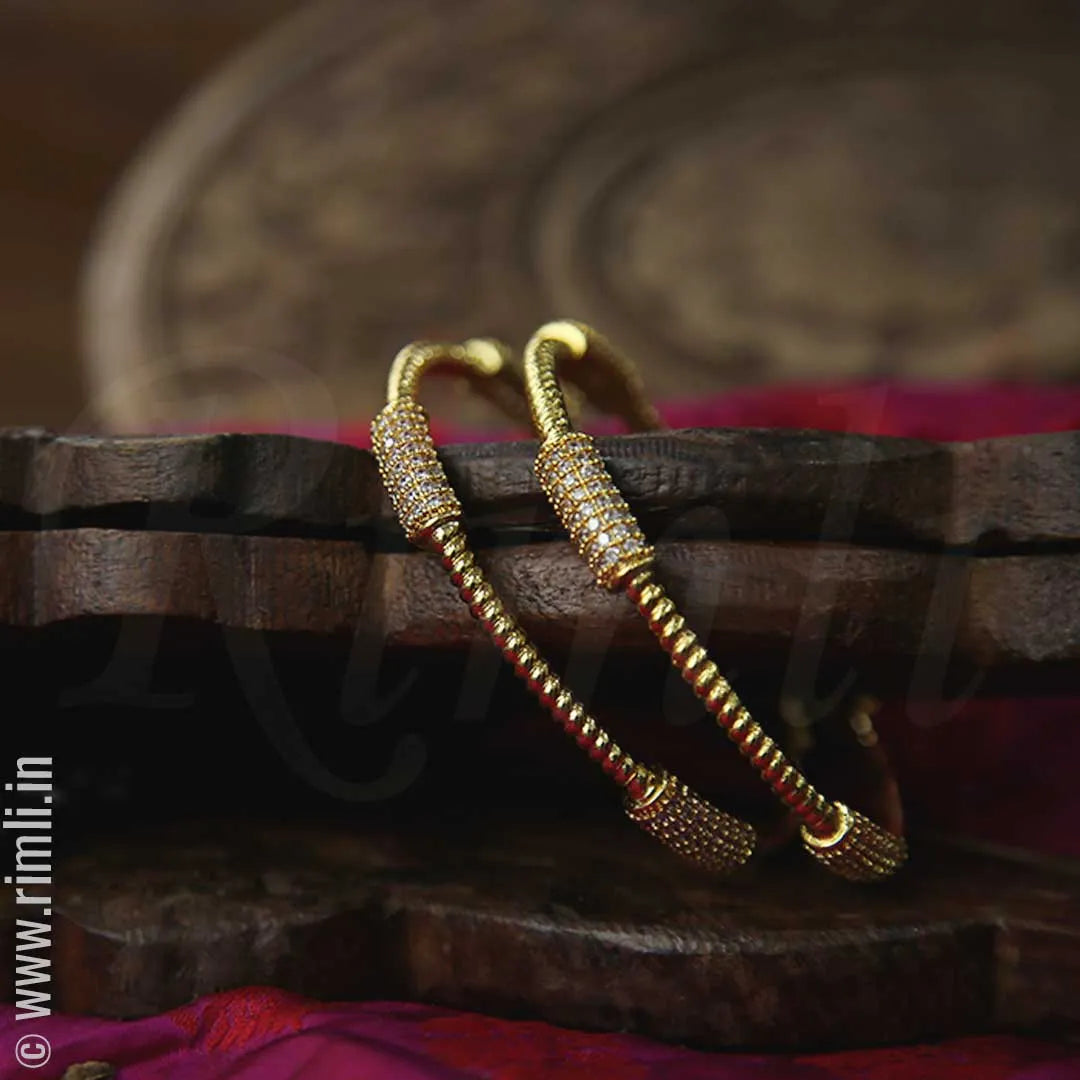 A pair of traditional white stone bangles handcrafted with Zircon stones.